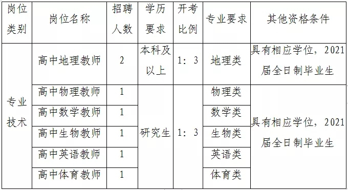 為進(jìn)一步加強(qiáng)教師隊伍建設(shè),根據(jù)《江蘇省事業(yè)單位公開招聘人員辦法》《關(guān)于進(jìn)一步做好全省中小學(xué)校新進(jìn)教師公開招聘工作的意見》《關(guān)于進(jìn)一步做好全市中小學(xué)教師公開招聘工作的通知》精神,江蘇省泰州中學(xué)將于2021年1月下旬赴相關(guān)高校招聘全額撥款事業(yè)編制教師7名?,F(xiàn)將有關(guān)事項公告如下: